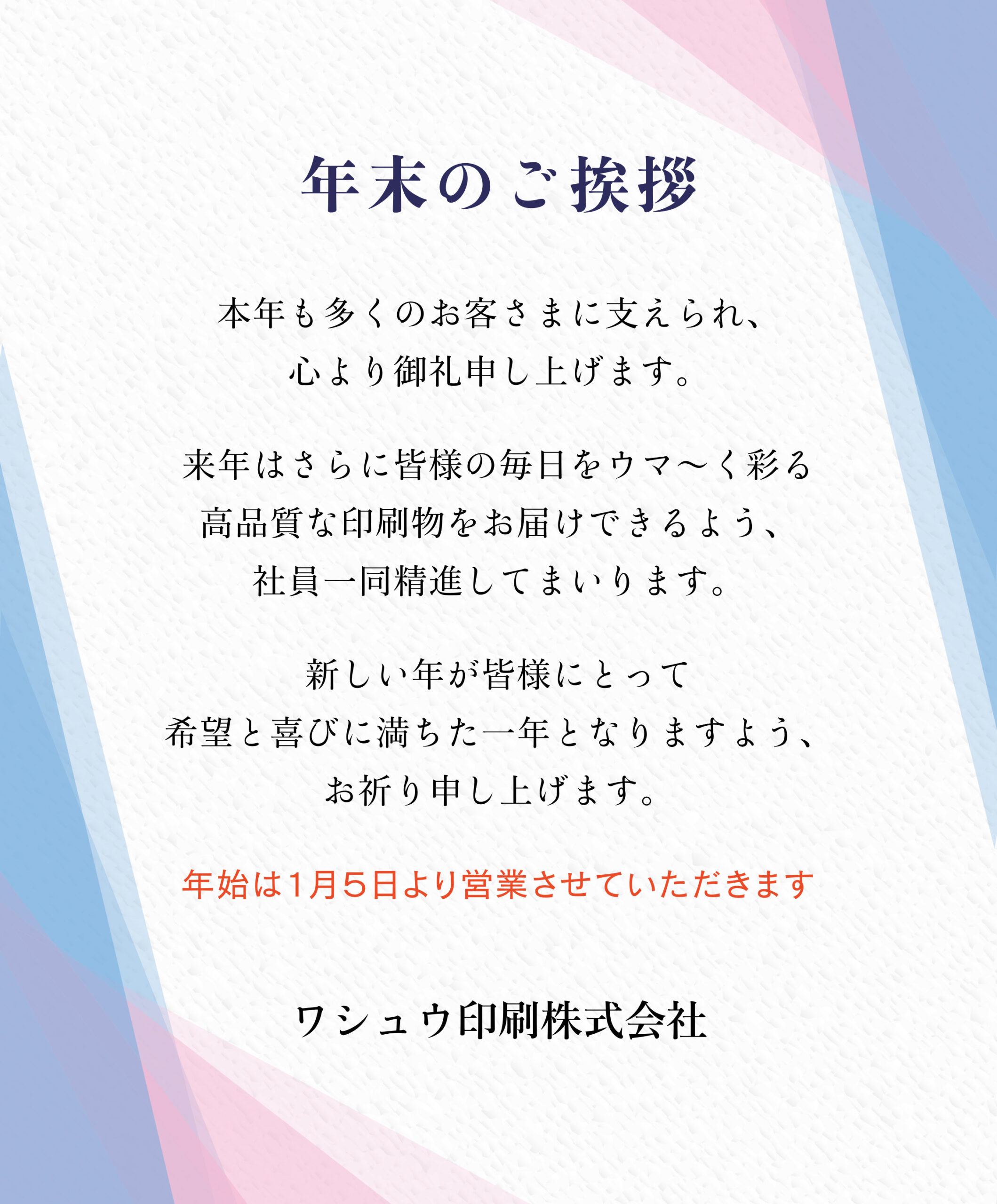 年末のご挨拶